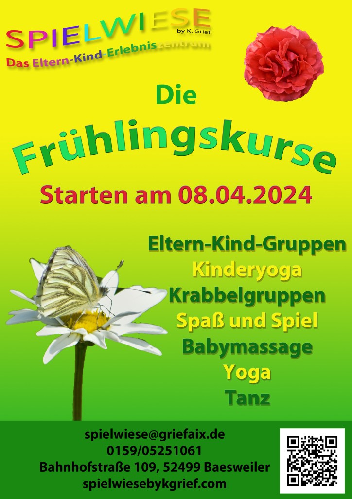 Das neue Jahr ist schon im vollen Gange und auf der Spielwiese in Baesweiler sind die neuen Kurse angelaufen. Du hast den Start verpasst? Das macht gar nichts, denn bei uns kannst Du problemlos in laufenden Kurse einsteigen und zahlst nur die Kursgebühr für die Termine, die noch stattfinden. Ganz egal, ob Du schwanger bist und Lust auf Yoga für Schwangere hast oder gerade frisch Mama geworden bist und Yoga mit Baby machen möchtest, komm gerne und steig noch ein. Suchst Du einen Kurs für Dein Baby und Dich, dann bist Du beim Baby- und Krabbelclub genau richtig. Wenn Dein Kind schon ein Jahr alt bist, dann komm zu den Minitapsis. Dein Kind ist schon älter? Für 2-4 Jahre alte Kinder gibt es die Minimäuse. Für 4-6 Jahre alte Kinder die Zumba®Kids Jr. und das Kinderyoga. Das Kinderyoga gibt es auch für 7-11 Jahre alte Kinder.